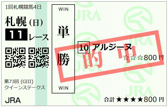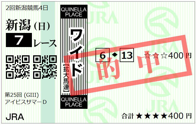 2025年8月3日(日)に新潟競馬場で開催されたアイビスサマーダッシュ、札幌競馬場で開催されたクイーンステークスの結果と管理人の馬券回顧です。