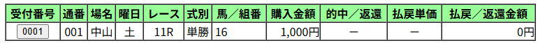 印は 【---】で、消去法は【---】着候補決着。馬券は唯一の1着候補の◎馬の単勝1点買いがノーヒットで、ココは完敗です。