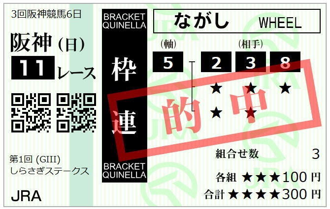 ・しらさぎS 【〇--】【1--】着候補 (単勝・枠連的中♪)