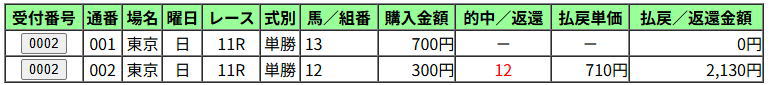 印は【〇-△】で、消去法は【1-2】着候補決着。馬券は単勝2点買い◎:〇=7:3で対抗馬710円が3口的中の回収率105%!欲を言えば950円ついたワイドも持ってたかったですネw。