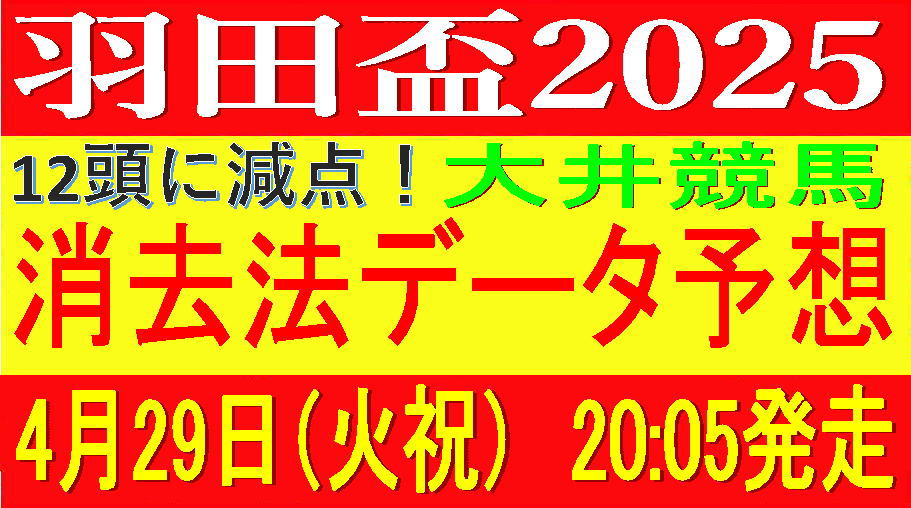 2025年4月29日(火祝)大井競馬場で行われる、羽田盃2025の競馬予想です。1800m戦で20:05の発走です。去年からJRA地方交流のJpn1に昇格しましたが、南関牡馬クラシックは今年もココから始まっていきます。去年の8頭立てから一転頭数も揃い、楽しみなメンバー構成になりました。データは過去3年で検証してます。