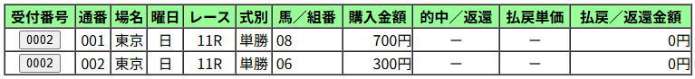 ・投票 2000円⇒回収 1050円