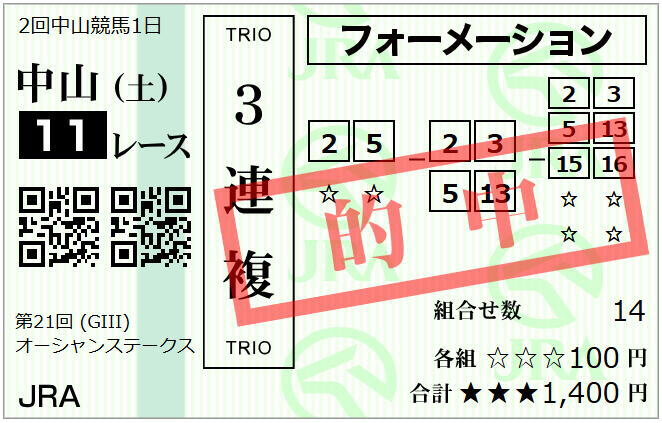 2026年2月28日(土)に中山競馬場で開催されたオーシャンステークス、3月1日(日)に阪神競馬場で開催されたチューリップ賞、中山競馬場で開催された中山記念他の結果と管理人の馬券回顧です。