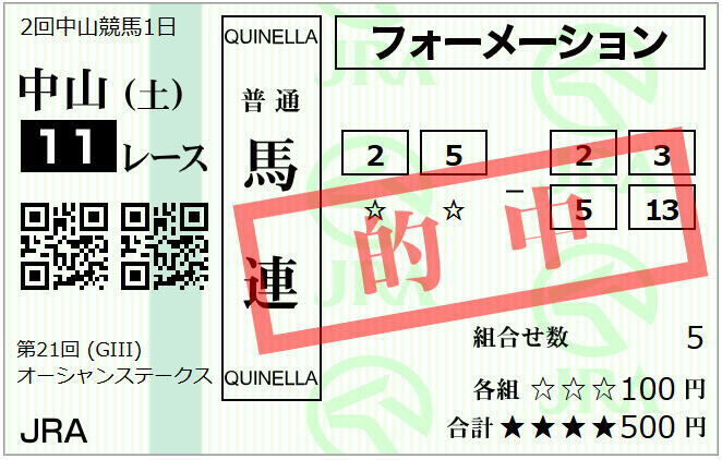 ・参加レース5⇒的中レース数2