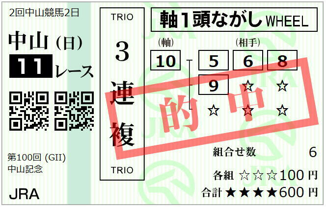 中山記念の馬券回顧と反省