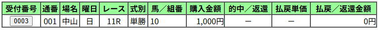 ・投票 1000円⇒回収 0円