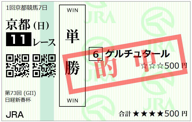 2026年1月18日(日)に中山競馬場で開催された京成杯、京都競馬場で開催された日経新春杯他の結果と管理人の馬券回顧です。