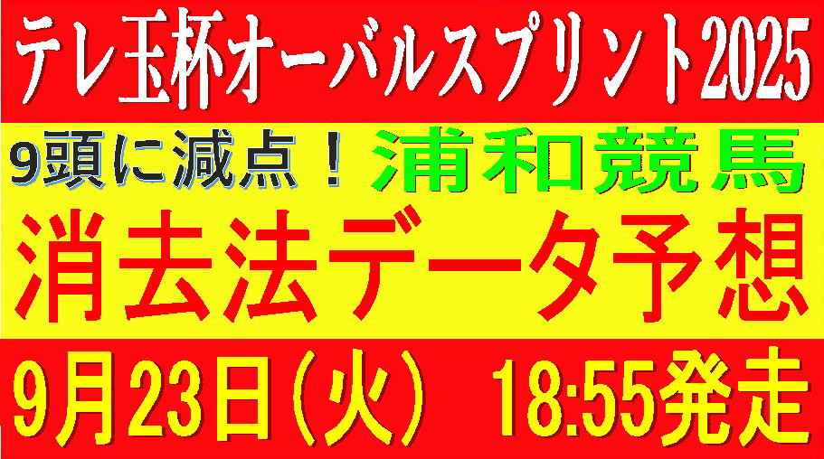 2025年9月23日(火)浦和競馬場で行われる、テレ玉杯オーバルスプリント2025の競馬予想です。1400m戦で18:55の発走です。この時期のスプリント戦はもっぱらJRA地方交流に寄ってまして、JRAの重賞が格下感否めない年が続いてます。賞金も充実してきつつあり地方競馬も盛り上がりをみせる秋競馬本番ですが、データは過去3年で検証してます。