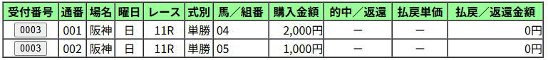 ・投票 1000円⇒回収 2500円