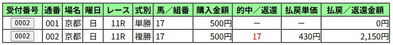 ・投票 2000円⇒回収 2150円