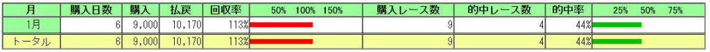 ・参加レース1⇒的中レース数1