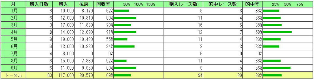 印は 【-▲-】で、消去法は【-2-】着候補決着。このレースは満点クリア馬2頭が回避した“消去法不成立戦”になり、馬券は複勝3点買いでしたが、9人気サイモンザナドゥが2着激走で複勝680円的中!これを2口持ってた好運もあり回収率136%でした。まぁ~“降り”のレースにしては上出来でしたネw