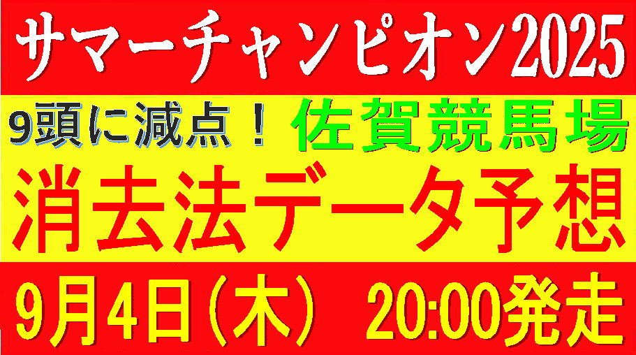 2025年9月4日(木)佐賀競馬場で行われる、サマーチャンピオン2025の競馬予想です。1400m戦で20:00の発走です。ココの重賞はナイターの夕方に行われるケースも多いんですが、個人的にはメインのナイター開催が希望ですネ。関東に比べ関西以西でスプリント重賞が手薄な事もあり、今年も兵庫から2頭・高知から1頭・地元勢が2頭の参戦です。データは過去3年で検証してます。
