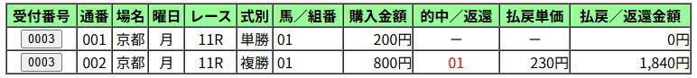 印は 【--〇】で、消去法は【--3】着候補決着。馬券は本命馬の単勝1点買いがノーヒットでした。嫌った人気馬に走られ、買った人気馬が凡走しては完敗です。